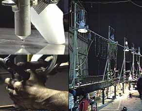 | I-Beam Music, die mechanisierte Klangperformance von Nicolas Anatol Baginsky und Barry Schwartz (San Francisco, Ca.), ist eine mehrdimensionale Klangskulptur, die ihre überzeugende formale und inhaltliche Kraft in der Live-Bespielung durch die Künstler entfaltet. Entwickelt wurde diese Arbeit von zwei eigensinnigen Multitalenten. Zentrales Element der Installation ist ein 4m langer, mit 6 Saiten bespannter Eisenträger. Im Verlauf der Performance wird dieses Instrument entlang eines Parcours automatisch durch verschiedene Spielsituationen bewegt und auf unterschiedlichste Art und Weise bearbeitet. Mechanische Finger zupfen Saiten, Chemikalien erzeugen Töne, Hitze-und Kälteschocks modifizieren Klänge. Die so entstehenden bizarren Klangstrukturen werden wiederum durch Computer bearbeitet und durch elektronische Musikinstrumente ergänzt. Überwachungskameras im inneren des Instruments und an verschiedenen Stellen der Maschinen erlauben dem Publikum zudem endoskopische Einblicke in das Innenleben der Installation. Die Bilder der elektronischen Augen werden live auf eine Großbildleinwand übertragen. Der Hamburger Nicolas A. Baginsky arbeitet schon lange als detailliebender Konzeptkünstler. Nach Ausbildung und Studium sammelt er in den USA vielfältige Erfahrungen im Theater- und Kunstbereich. Zurück in Deutschland entwirft er neben seinen eigenen Projekten Maschinen und computergesteuerte Objekte für das Avantgarde Tanzensemble COAX. Diese eigentümlichen Konstruktionen verändern die tänzerischen Konventionen und bilden den zentralen Aspekt jener Produktionen. Baginsky entwickelt parallel dazu seine intelligenten Maschinenwesen und neuronalen Systeme. Im Mittelpunkt seiner Arbeit steht sein Interesse an computergestützten Netzen, die mit einer selbständigen Lernfähigkeit bzw. einer eigenen Modifizierbarkeit ausgestattet sind. Seine bekannteste Arbeit, die interaktive Skulptur Elisabeth Gardner befindet sich in der Sammlung des Hamburger Kunsthalle. Barry Schwartz lebt und arbeitet in San Francisco, Kalifornien. Hier blüht auch ein besonderer Zweig aus den Ursprüngen der concept art und wird von jungen Künstlern, wie z.B. Barney W. Haynes und der Künstlergruppe TODT, die alle schon bei FORO ARTISTICO zu Gast waren, technisiert und weiterentwickelt. Sicherlich standen die gigantischen Maschinen- und Schrottprojekte der Survival Research Laboratories Pate. Jedoch nicht auf vordergründige Effekte basierend, sondern mit konstruktiver Klarheit produziert Schwartz seine Objekte, Skulpturen und Environments und fordert ihnen mit nervösem Feingefühl äußerst virtuose Klangkonstellationen ab. Während einer einwöchigen Arbeitsphase erarbeiteten beide Künstler gemeinsam das maschinengestützte Konzert I-Beam Music, das am 20. und 21. August 1995 in der Eisfabrik präsentiert wurde. siehe auch: I-Beam Music Website (link öffnet in neuem Fenster) |