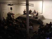 Podiumsdiskussion mit Klaus. W. Eisenlohr, Künstler und Filmer, Dr. Walter Prigge, Stiftung Bauhaus Dessau, Klaus-Dieter Weiss, Architekturkritiker, Moderation: Dr. Anne Müller von der Haegen, freie Kuratorin Die Veranstaltung wird eröffnet von Thomas Prinz, Geschäftsführer der LTS, und Architektenkammerpräsident Wolfgang Schneider |