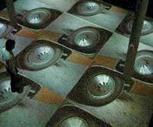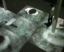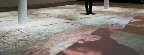 Schreiners Videoinstallation "Retake" ist eine Deckenprojektion mit vier Videoprojektoren. |