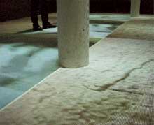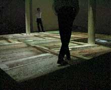 "Subsoil" ist die neue Gemeinschaftsproduktion der beiden Künstler, die damit an vorangegangene Projekte anknüpft. So ist diese Arbeit eine spannende Weiterentwicklung eigener Konzepte, die hier sowohl inhaltliche als auch formale Verbindungen schafft. Zu sehen sind zwölf unterschiedliche Bildfelder auf den Boden der Ausstellungshalle. Der Betrachter betritt diese Bodenprojektion und intergriert sich somit einerseits selbst und andererseits als Schattenbild in die Installation. Dem Prinzip beider künstlerischer Ansätze folgend, werden verschiedenste Möglichkeiten gewohnter und ungewohnter Bewegungssimulation dargestellt. Die unterschiedlichsten Sequenzen von Meereswellen über Kornwogen und Felsboden, von Flugperspektiven über Fallvisionen zum Eintauchen in Wasser, von Laufen über Schweben zum Verharren ergänzen sich zu einer bewegungsreichen Choreographie. |